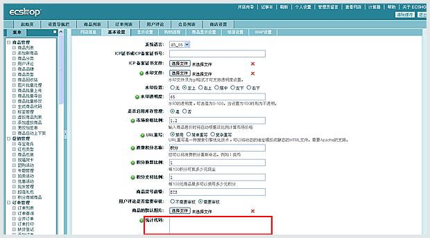 • 進(jìn)入ECShop網(wǎng)上商店系統(tǒng)后臺(tái),選擇菜單"系統(tǒng)設(shè)置"->"商店設(shè)置"->"基本設(shè)置",將365webcall客服代碼加入到"統(tǒng)計(jì)代碼"中,然后點(diǎn)擊最下方的確定即可。