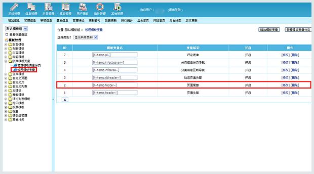 • 首先獲取在線客服安裝代碼,登陸帝國(guó)cms后臺(tái),進(jìn)入模板管理》公共模板變量》管理模板變量, 找到footer模板,點(diǎn)擊“修改”,將在線客服代碼復(fù)制粘貼到編輯框中的合適位置,然后點(diǎn)擊提交。